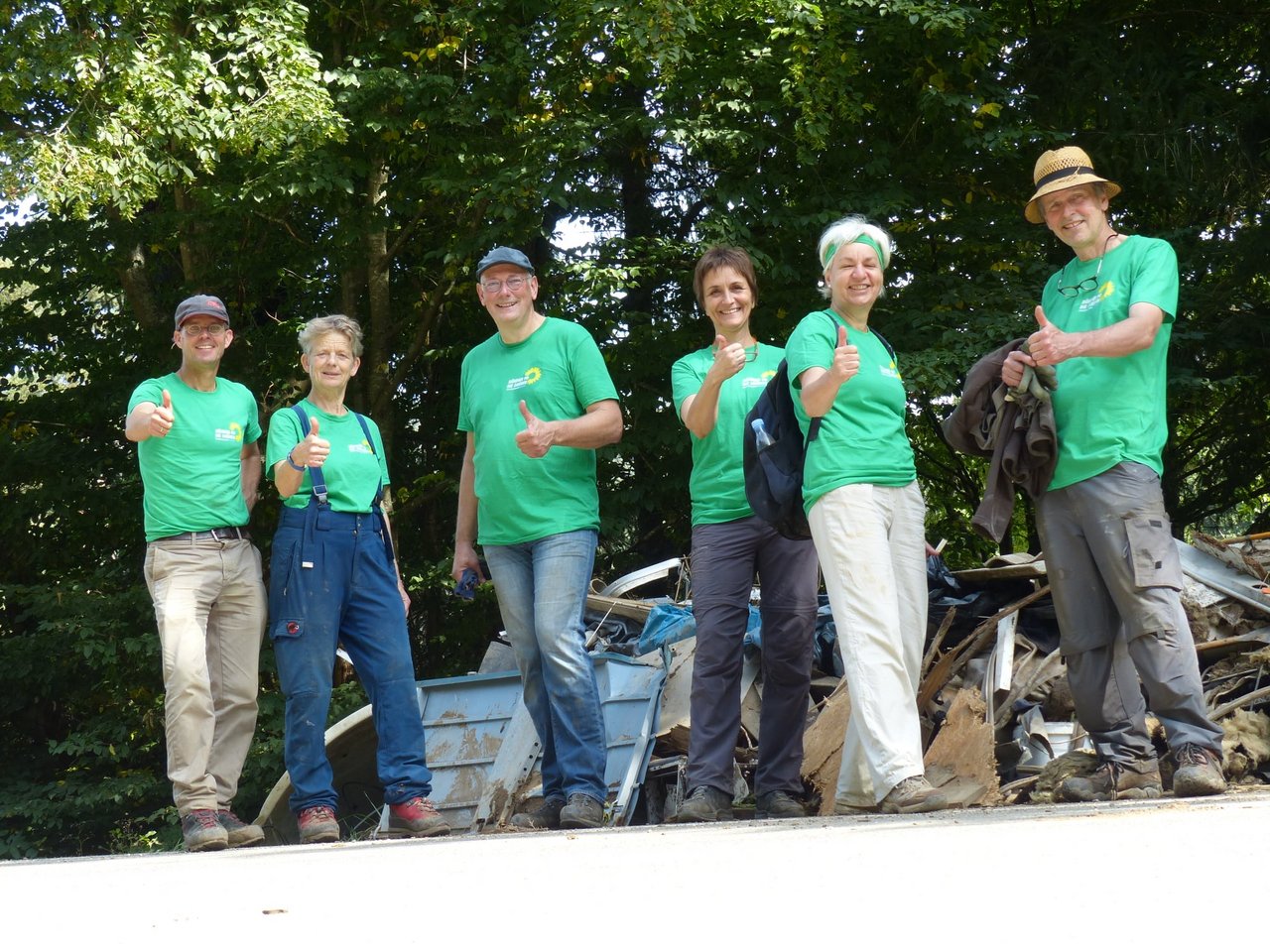 Auch sechs Wochen nach der Flutkatastrophe gibt es immer noch viel aufzuräumen – kein Wunder bei 70 Kilometern Flusslauf in Rheinland Pfalz! Daher trafen sich am 7. September Mitglieder des Grünen Ortverbandes Adenau (VG) mit Martin Schmitt, dem Grünen Direktkadidaten für den Wahlkreis 198. Der Einsatz war am Ahrufer vor Schuld. Auf wenigen Metern fanden sich hier die Reste des nahen Campingplatzes: Vorzelte, Gartenmöbel, eine riesige Satellitenschüssel und Rasenmäher. Dieses Treibgut muss aus der Aue hoch auf die Strasse getragen werden, damit es von der Müllabfuhr aufgeladen und entsorgt wird. Auch bei der nächsten Aufräumaktion am 18. September der Gemeinde Antweiler wird wieder angepackt. Wie heißt es schon aus Kindertagen: „Viele Hände machen schnell ein Ende“. Für die Grünen ist wichtig: Anfangen, oder einfach „mach et“.