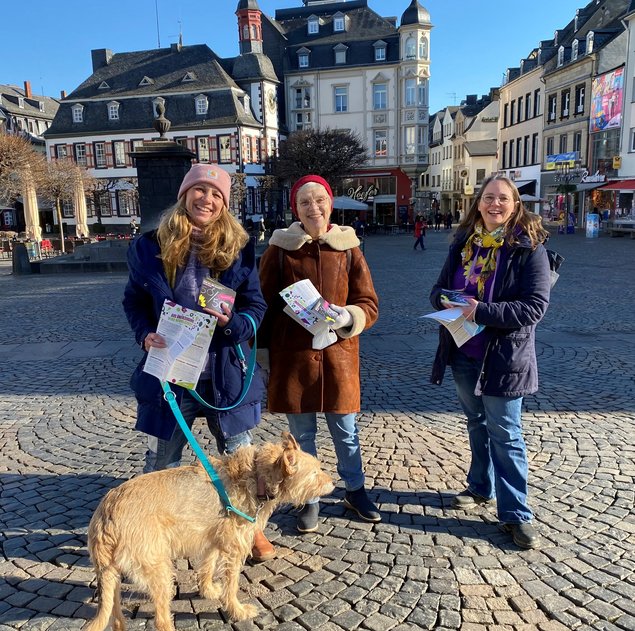 Unter dem Motto: Wollen Frauen von Politik nur Blümchen und Schokolade - oder 50% der Macht? starteten die Grünen des Ortsverbandes Mayen-Vordereifel eine Mitmachaktion zum Weltfrauentag. „Ich mag Schokolade. Aber in der Vergangenheit hat es mich oft irritiert, wenn ausgerechnet von Akteuren der Politik Blümchen und Schokolade zum Weltfrauentag verteilt wurden. Ganz so, als sei dies das einzige was Politik uns Frauen anzubieten hat. Dabei gibt es so viel mehr, was wir Frauen wollen und brauchen, damit wir in einer gleichberechtigten Gesellschaft leben“, erklärt Anne Schnütgen, Vorsitzende des Ortsverbandes der Grünen. Mit der Mitmachaktion will ihr Ortsverband aktiv auf die Frauen in Mayen zugehen und hören, was die brennenden Themen vor Ort sind. „Wir haben Mitmach-Karten an die Frauen verteilt und sind schon sehr auf die Antworten gespannt, die wir genau anschauen werden. Schön, wenn wir viele neue Impulse und Ideen bekommen“, so Schnütgen. Wer die Grünen am Dienstag in der Stadt verpasst hat, kann auch noch online mitmachen. Wünsche, Anregungen und Ideen können an: info@gruene-myk.degeschickt werden. Denn auch nach dem weltweiten Gedenktag steht für die Grünen das Thema Gleichberichtigung aller Menschen ganz vorne auf der Agenda.