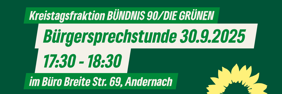 Die Kreistagsfraktion von BÜNDNIS 90/DIE GRÜNEN bietet erstmalig eine Sprechstunde im neueröffneten Büro in Andernach an. „Mit diesem neuen Gesprächsangebot möchten wir den Bürgerinnen und Bürgern des Landkreises Mayen-Koblenz eine Gelegenheit für einen Austausch geben, für…