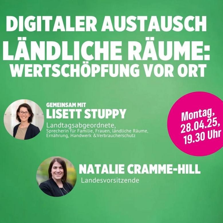 ihr seid herzlich eingeladen zum digitalen Austausch am Montag, 28. April um 19.30 Uhr. Gemeinsam mit unserer Landesvorsitzenden Nathalie Cramme-Hill wollen wir ins Gespräch kommen: