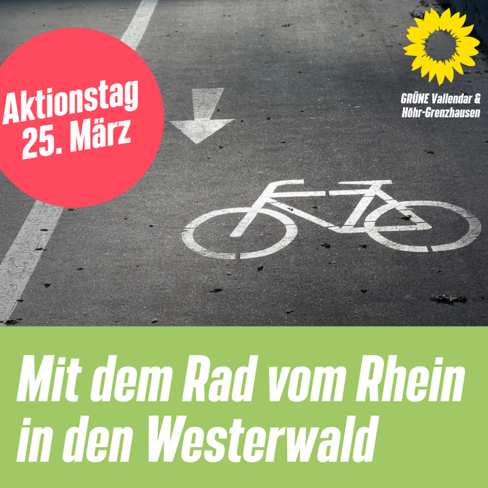 Zur Teilnahme an der Podiumsdiskussion am 25.03.2023, ca. 12:15 bis 13:45 in Höhr-Grenzhausen, Laiguegliaplatz möchten wir euch gerne einladen. Selbstverständlich würden wir uns auch sehr freuen, wenn ihr gemeinsam mit euren Fahrrädern von Montabaur und Ransbach-Baumbach dazustoßen würdet. Bei Fragen sprecht wendet Euch gern an: