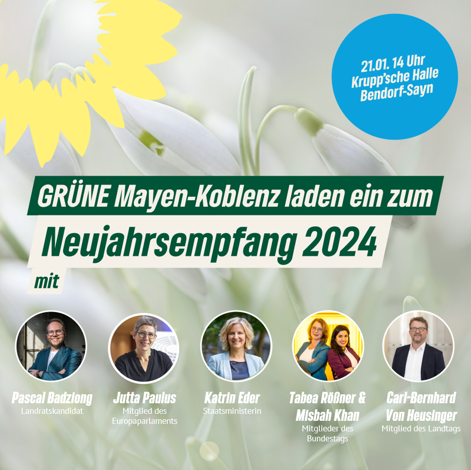 Inhaltlicher Schwerpunkt werden die aktuelle Kreispolitik sowie die anstehende Europawahl sein. Als Gastrednerinnen und Gastredner haben sich u. a. der Landratskandidat Pascal Badziong, Katrin Eder (Staatsministerin für Klima, Umwelt, Energie und Mobilität Rheinland-Pfalz), die Europaabgeordnete und rheinland-pfälzische Spitzenkandidatin Jutta Paulus, die Bundestagsabgeordneten Misbah Khan und Tabea Rößner sowie der regionale Landtagsabgeordnete Carl-Bernhard von Heusinger angekündigt. Herzlich eingeladen sind neben den Mitgliedern auch alle an GRÜNER Politik Interessierten.
