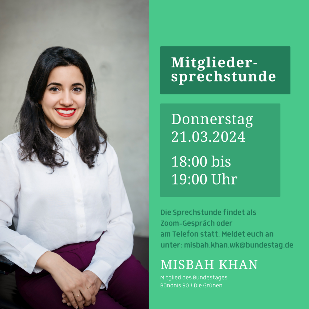 Um eine kurze Anmeldung mit der Angabe von Namen und Telefonnummer per E-Mail an misbah.khan.wk@bundestag.de wird gebeten.