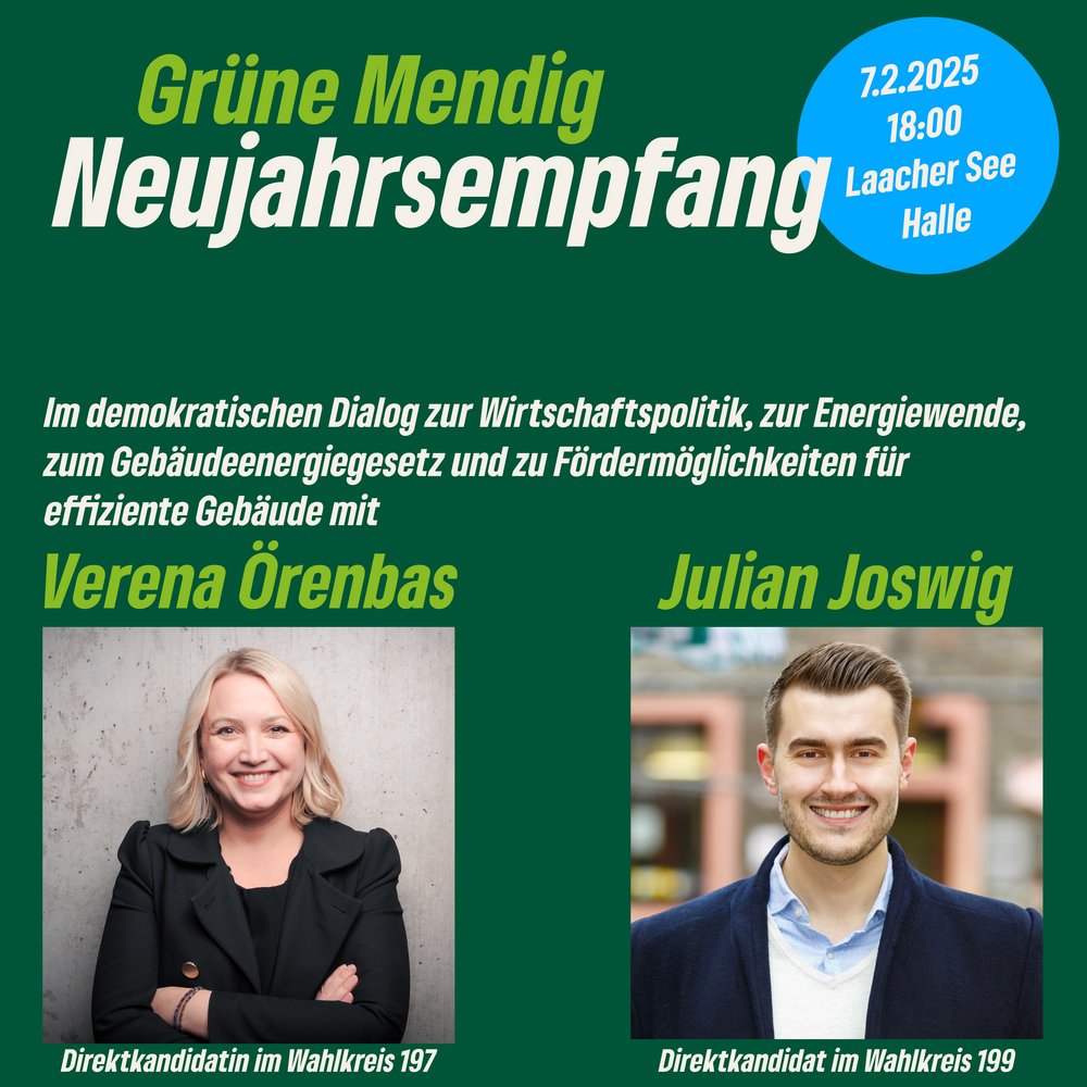 Am 7. Februar 2025 ab 18:00 Uhr möchten wir die Bürgerinnen und Bürger aus Mendig und Umgebung zum Neujahrsempfang in die Laacher See Halle Mendig einladen. Im Mittelpunkt des Abends stehen der offene, demokratische und sachliche Dialog zu wichtigen Themen wie Wirtschafts- und Finanzpolitik, der Energiewende sowie den Fördermöglichkeiten für Wärmepumpen und Solaranlagen.