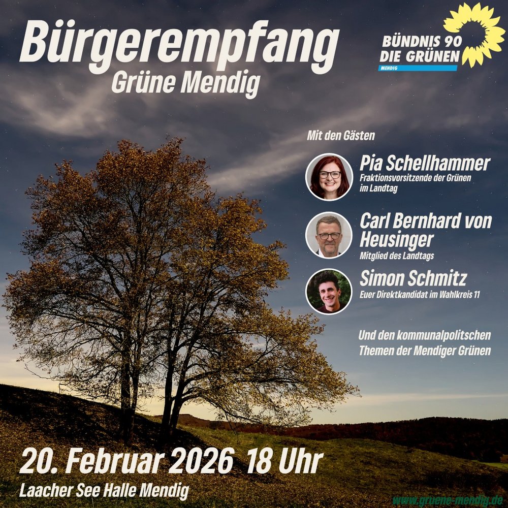 Unser Abendprogramm wird gestaltet von Pia Schellhammer, Vorsitzende der Grünen Landtagsfraktion in Rheinland-Pfalz, Carl-Bernhard von Heusinger, Mitglied des Landtages Rheinland-Pfalz, sowie unserem Wahlkreiskandidaten Simon Schmitz aus Andernach. Sie werden zu den Themen Demokratie, Stärkung der kommunalen Finanzen sowie Wertschöpfung aus erneuerbaren Energien sprechen. Wie bereits im vergangenen Jahr stellen wir Mendiger Grünen zudem unsere Ideen und Vorhaben für das kommende Jahr vor.