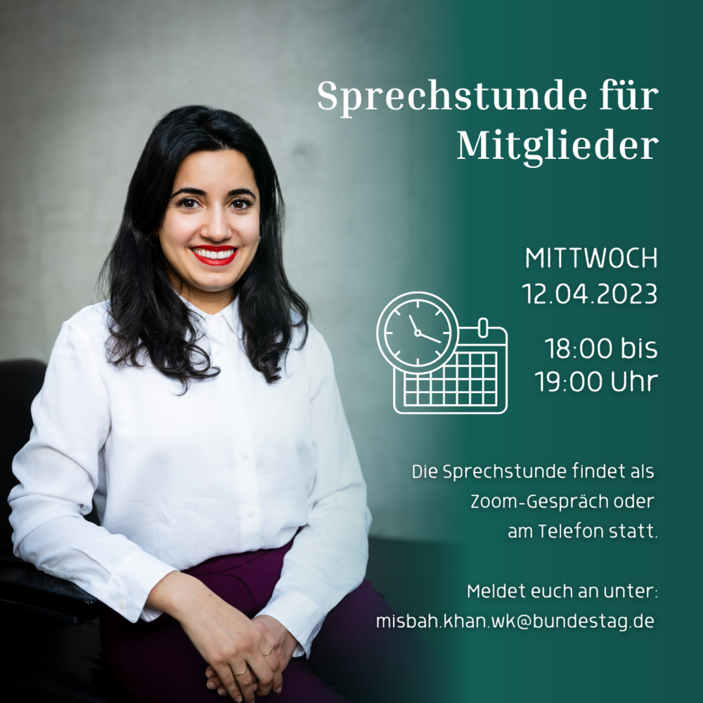 Um Anmeldung unter misbah.khan.wk@bundestag.de wird gebeten.