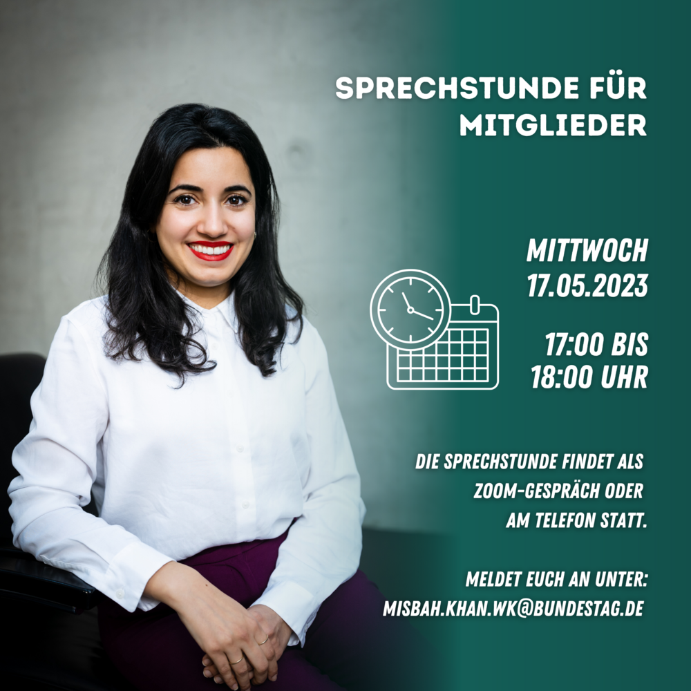 Um Anmeldung unter misbah.khan.wk@bundestag.de wird gebeten.