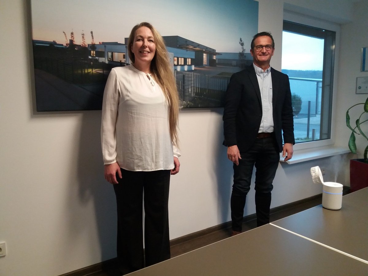 Bei ihrem Besuch in Mülheim-Kärlich ließ sich Carmen Bohlender von Geschäftsführer Dirk Bersch, anhand eines kleinen zylinderförmigen Geräts die Wirkungsweise des BeviClean Air Systems erklären: „Die Geräte werden mit einer speziellen Salzlösung gefüllt und diese dann mit Hilfe einer Ultraschalltechnik in feinen unsichtbaren Nebel verwandelt. So entstehen ‚gute‘ Aerosol-Tröpfchen, die sich an Bakterien, Viren, Feinstaub oder Micropilze in der Raumluft heften und diese dann zerstören oder unschädlich machen. Dadurch wird die Anzahl der Keime und Viren extrem reduziert und nehmen ihnen die für den Menschen schädliche Wirkung. Ohne die Gesundheit von Menschen und Tieren zu beeinträchtigen“, so Dirk Bersch.
