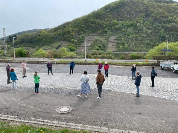 Ein weiterer Ortsrundgang führte die Winninger Grünen heute auf das Bahnhofsgelände, zum Haus Moisa und an das Moselufer. "Wir haben uns intensiv über die anstehenden Projekte der Gemeinde ausgetauscht und einige gute Ideen dazu gesammelt", so Sonja Seyda, die sich über zahlreiche Teilnehmerinnen und Teilnehmer freute. Es wurde noch einmal bekräftigt, dass die Winninger Grünen bei allen Projekten für die Umsetzung von umwelt- und klimapolitischen Maßnahmen kämpfen werden. "Jede langfristige Investition in Plätze und Gebäude muss nachhaltig geschehen und gesellschaftlichen Wandel mitdenken. Das gilt zum Beispiel für die Themen Energiesparen, Energieerzeugung, Mobilitätsverhalten und klimaneutrales Bauen", fügte Seyda hinzu.