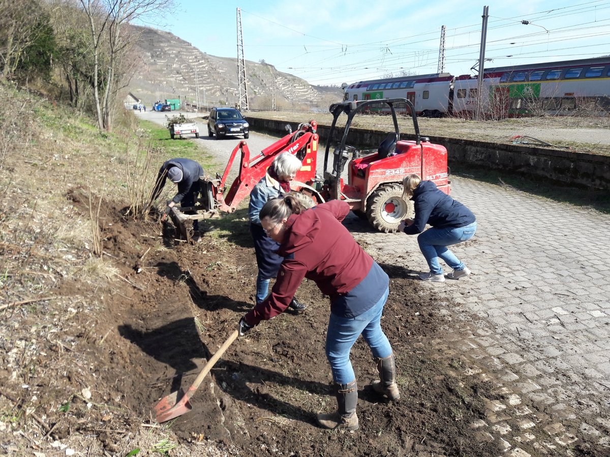 Wiederum großen Einsatz zeigten heute die Winninger Grünen. Gemeinsam mit der FDP wurde auf dem Bahnhofsgelände gearbeitet. Dieses Gelände gehört zum neuen Parkraumkonzept Winningens, das in der letzten Ratssitzung mit den Stimmen von FDP, Grünen und SPD verabschiedet worden ist. Hier sollen zukünftig Dauerparker, Touristen und Reisebusse kostenfrei parken können. "Bevor Fachfirmen mit Ausbesserungsarbeiten an den Parkflächen beauftragt und Parkmarkierungen angebracht werden können, müssen von der Gemeinde einige Vorarbeiten geleistet werden, an denen wir uns gerne beteiligen", erklärt Sonja Seyda, Fraktionsvorsitzende der Winningen Grünen, den Arbeitseinsatz. Die Grünen-Chefin bedankte sich bei einigen Unterstützerinnen und Unterstützern, zu denen auch Mathias Kornes vom Distelberger Hof zählte, der mit "schwerem" Arbeitsgerät angerückt war. "Es war ein tolles gemeinschaftliches Erlebnis, das erfreulicherweise bei strahlendem Sonnenschein stattfinden konnte. Und die Arbeit hat richtig viel gebracht", fasste Seyda den Arbeitseinsatz zusammen.