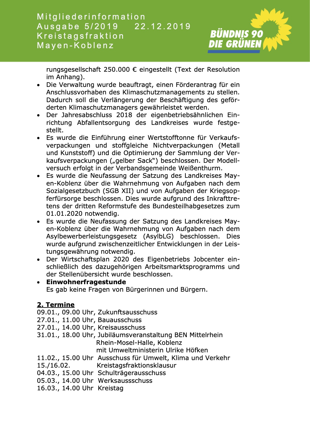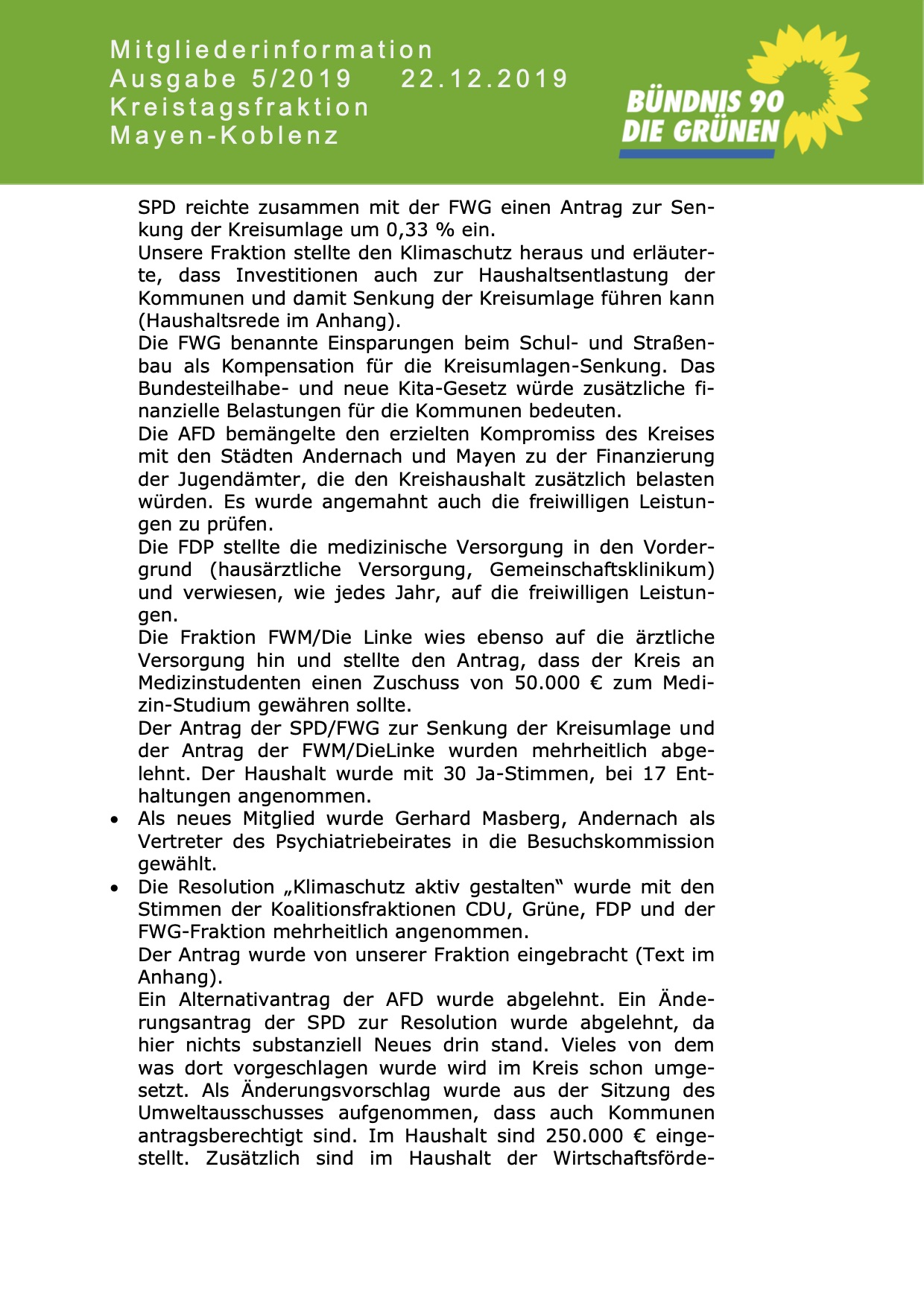 Pressemitteilung von BÜNDNIS 90/DIE GRÜNEN KREISTAGSFRAKTION MAYEN-KOBLENZ