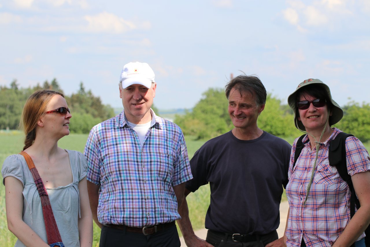 Herr Dipl.-Biologe Jörg Hilgers von der Stiftung für Natur und Umwelt in Mayen-Koblenz führte die Gruppe zunächst am Fuße des Michelberg an einem konventionell bewirtschafteten Maisfeld vorbei.